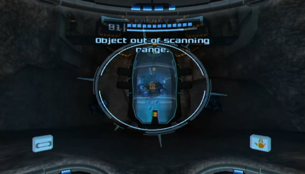 A uniform thing across tough Metroid Prime bosses is that they have teeny tiny weak points that are rarely accessible. The beam absorption weapons system is perhaps the most annoying part of the Elite Pirates, because as far as I can tell it doesn’t actually have that missile weak point that their research keeps mentioning. At the very least, when I shoot a missile at it, it doesn’t seem to do anything. Maybe that’s Veteran difficulty, maybe I’m just not doing it right. Either way, it sure kept me from doing more than dodging for a massive part of the fight.