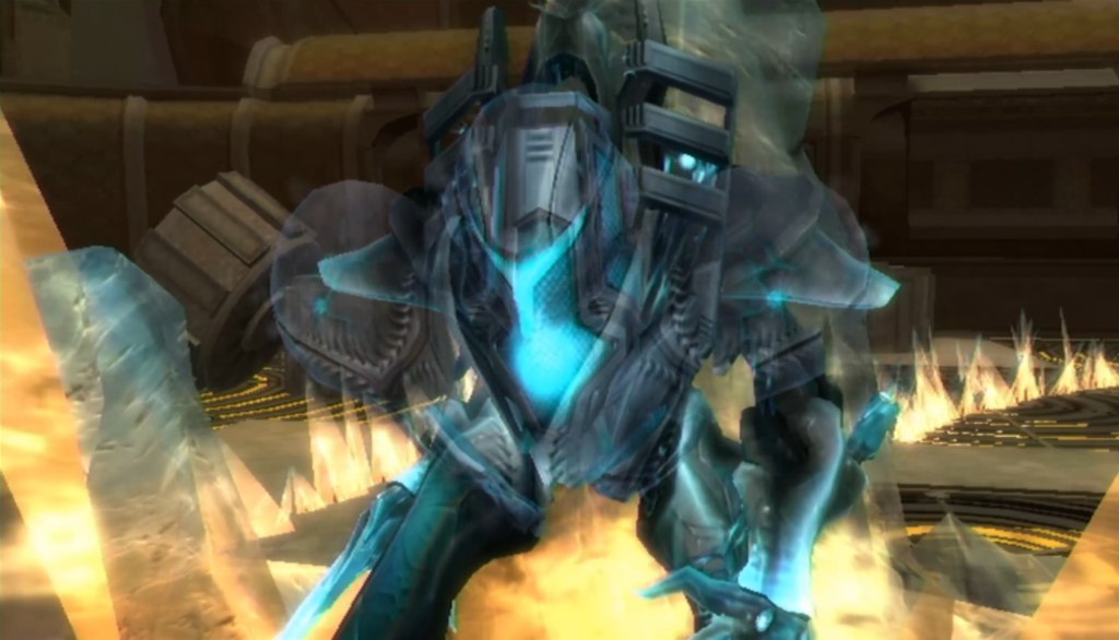 I’m going to do my best to never let it cause a problem, but essentially, you get ten normal seconds of Hypermode once that cutscene plays. After that, your Hypermode gets “corrupted” and the Phazon starts filling instead of staying at a steady level, and you can’t cancel Hypermode. Normally, canceling Hypermode early gives back all the energy you didn’t spend. However, if you let the red bar fill all the way back up, it’s an instant game over. It gives a special cutscene, so hey, that’s cool. But I’ve never actually experienced it because it’s so easy to prevent. Rather, if I’ve spent a lot of energy and still have foes to confront, I might just sit in Hypermode for a bit so I can get some free ammo.