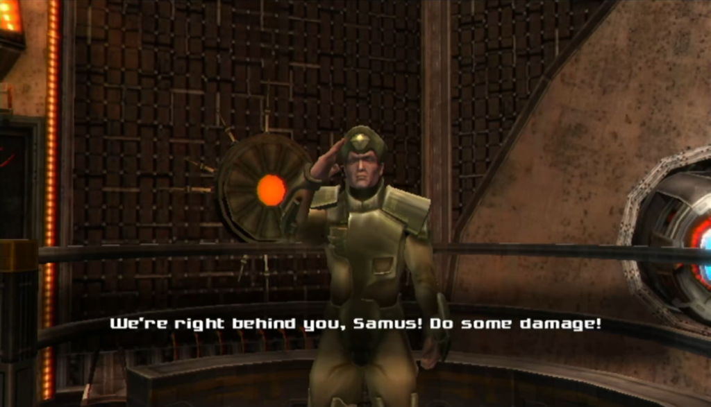 I gotta say, I really like Admiral Dane. He respects Samus’s accomplishments and is using her services appropriately: where just throwing more marines at a problem won’t solve it. He also recognizes that she’s not totally perfect, and the troops are also okay with it, given that he sends her 12 people when she only really needs four. There’s an achievement for not letting anyone die, but this is Veteran mode, and I can’t kill the enemies quite that quickly.