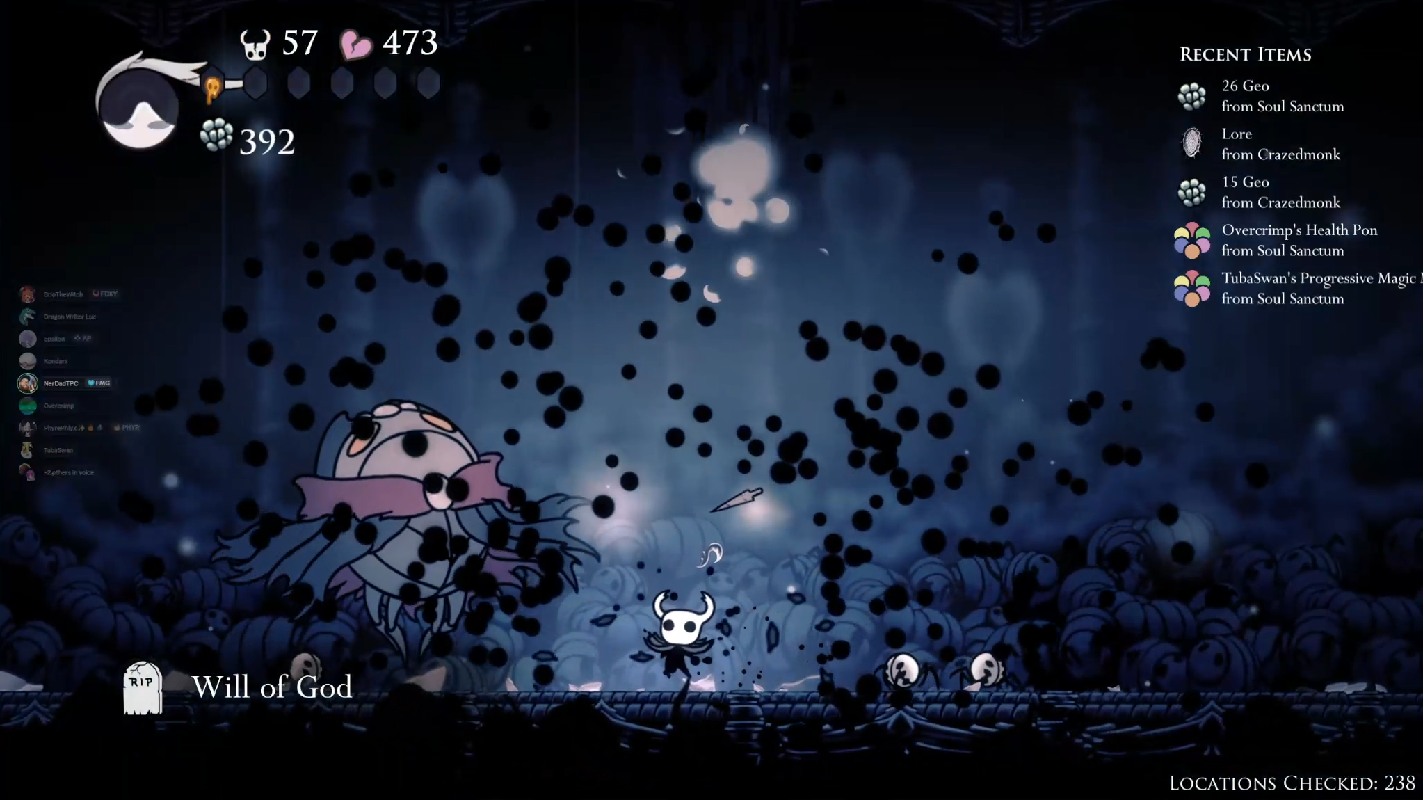I do randomizer of Hollow Knight because I have fun with it, and it's even more fun doing it with others, so that's why I do Archipelago with DesignationV. I certainly don't enjoy the game so much that I could stream only that game, but once a month is a good frequency for me. If he could do it on the first Saturday instead of the last Saturday would be better for me considering my church's schedule, but you can't win on everything. And it would have also been nice for this one not to have been on Sunday for the same reason. Regardless, I enjoyed playing the game, and doing it for charity is a big bonus. It's not like I'm streaming for money; you can see my tiny sub goal in the bottom right corner. I'd be homeless if that was my only income. I stream because it's fun.